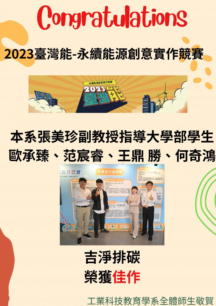 大學部學生參加永續能源創意實作競賽榮獲佳作